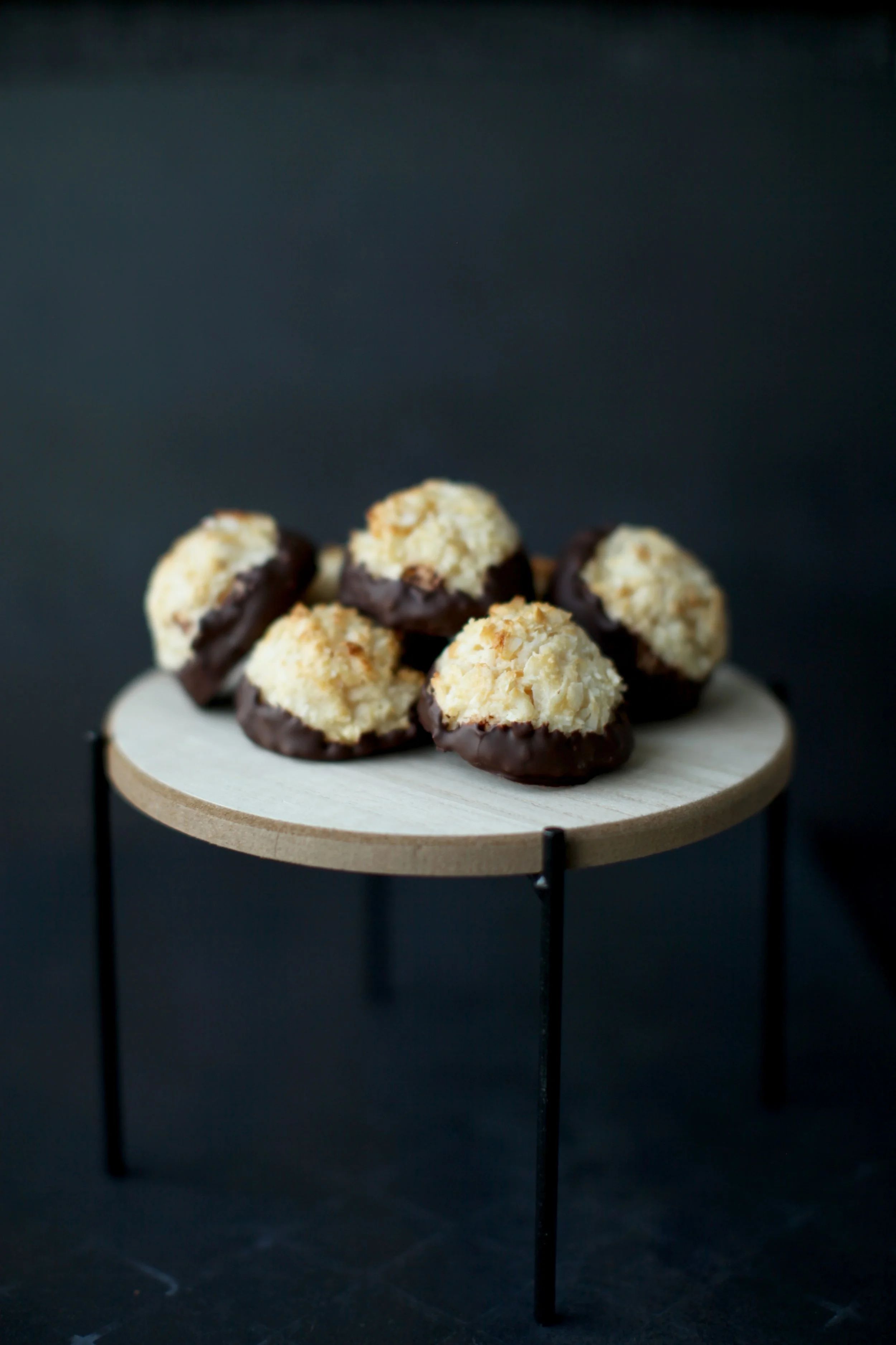 These macaroons are soft and chewy on the inside with a slightly crisp outside. Dipped in chocolate, they make the perfect 2-bite treat.